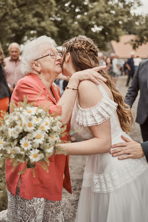 Wie viel die beiden gelacht haben! Beim Ansehen der Bilder geht mir jedes Mal das Herz auf. Aber auch Tränen und viele Emotionen begleiteten diese besondere Trauung. Sogar das Wetter spielte mit: von Wolken über Nieselregen bis hin zu strahlendem Sonnenschein – so plötzlich, dass das Brautpaar mit dem Regenschirm in der Sonne saß.